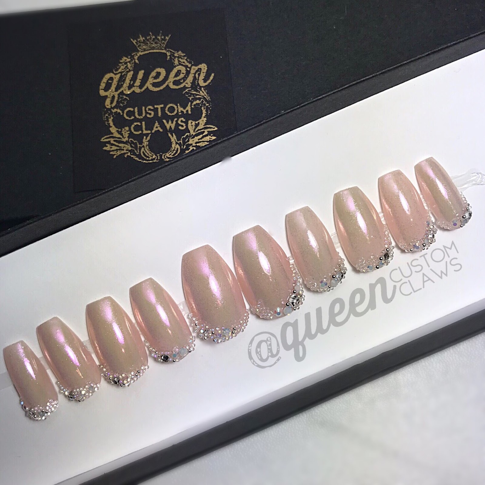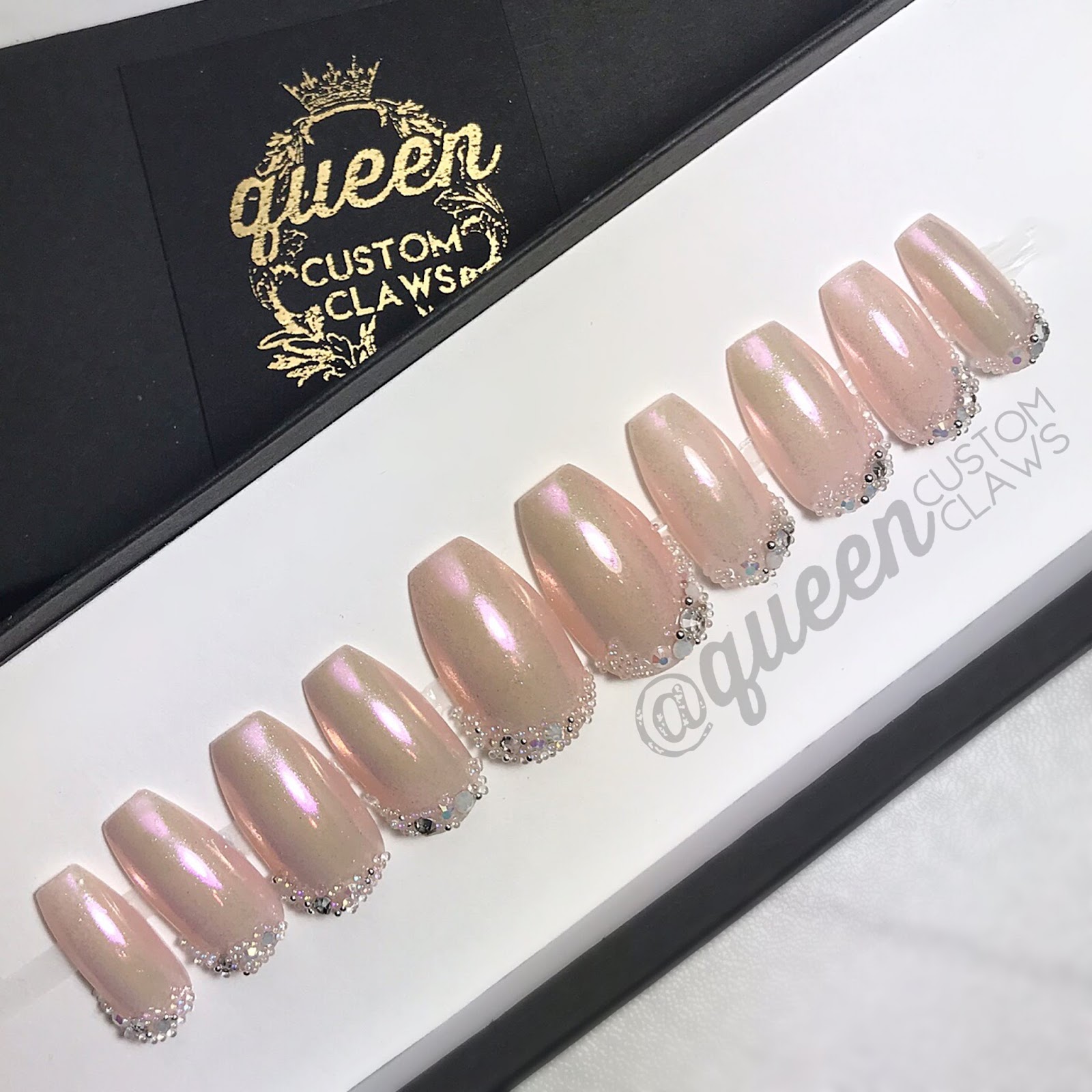 Caviar crystal cuticles #fakenails #glueonnails #pressonnails#caviar #swarovskicrystals #swarovski#unicornnails #gelnails #gelpolish